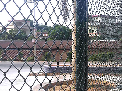 选用低碳钢丝。 编织方法: 编织焊接而成。 规格: 1. 包塑丝经:3.8mm ; 2. 网孔:50mm X 50mm; 3. 尺寸:3000mm X 4000mm; 4. 立柱:60/2.5mm; 5. 横柱:48/2mm; 防腐处理: 电镀、热镀、喷塑、浸塑处。 优点: 具有防腐、防老化、抗晒、耐候、色彩鲜亮、网面平整,强有力张紧,不易受外力撞击变形、现场施工安装、灵活性强(可根据现场要求随时调整造型和尺寸)。 可选颜色: 蓝色、绿色、黄色、白色等