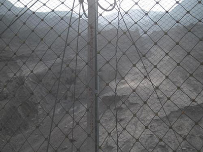 材质:钢丝绳网、支撑绳和减压环构造:由钢丝绳网或环形网(需拦截小块落石时附加一层铁丝格栅)、固定系统(锚杆、拦锚绳、基座和支撑绳)、减压环和钢柱四个主要部分构成。