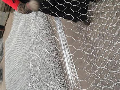 (7)重型拧花网是采用低碳钢丝镀锌大丝号编织,钢丝的抗拉强度不少于38kg/m2,钢丝的直径可达 2.0mm-3.2mm,钢丝表面通常还采用热镀锌保护,镀锌保护层的厚度可根据客户的要求制做,镀锌量大可达到300g/m2。
